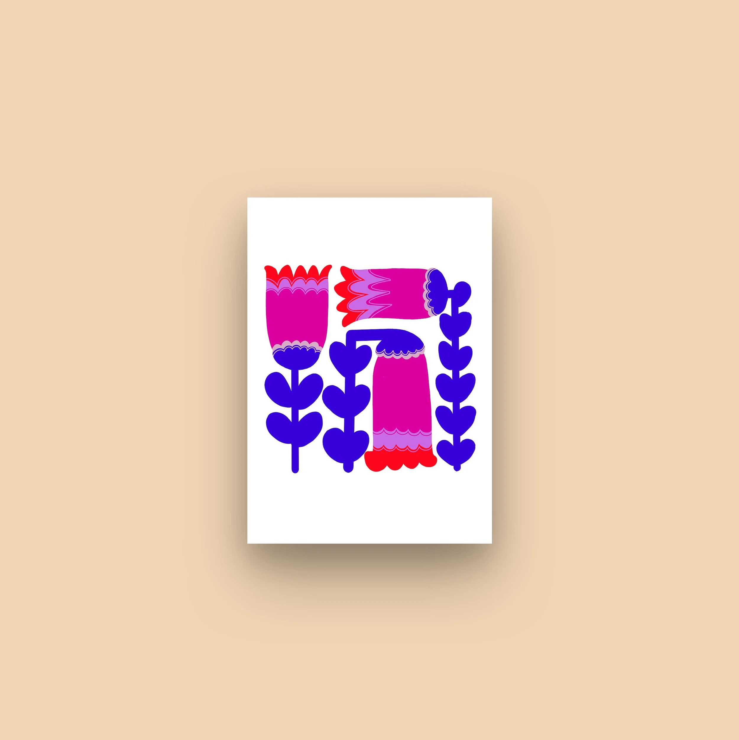 Floral greeting cards, art prints, scarves, aprons, washi tapes, personalised portraits.