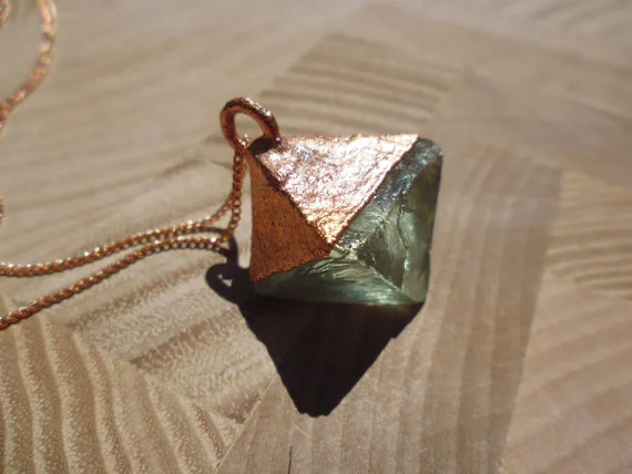 Melbourne jeweller Marit Hamer hand crafts pendant necklaces from natural minerals and stones. Every pendant is chosen for its particular character so each piece is unique and the natural imperfection of each is highlighted. Each stone is partly wrapped in a thin metal sheet which will change over time when worn and touched to further personalise each pendant.