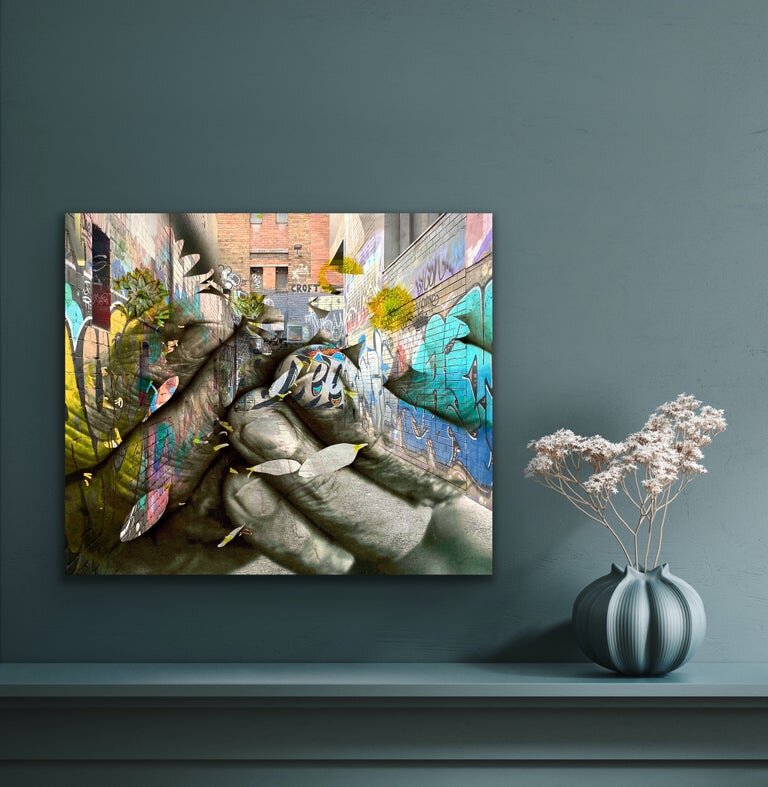 Most of the imagery is created by physical and digital layering and arranging of multi images usually featuring flora and fauna and Melbourne city.